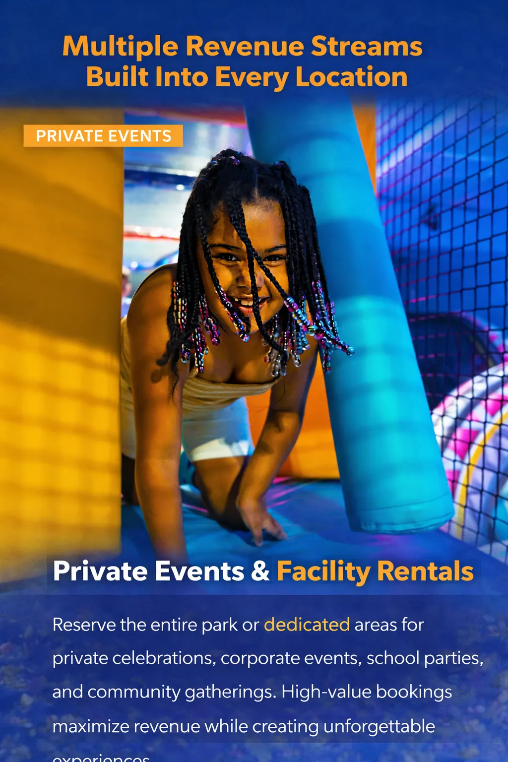 From open play and birthday parties to memberships and private events, every visit creates memorable experiences while generating multiple recurring revenue streams.